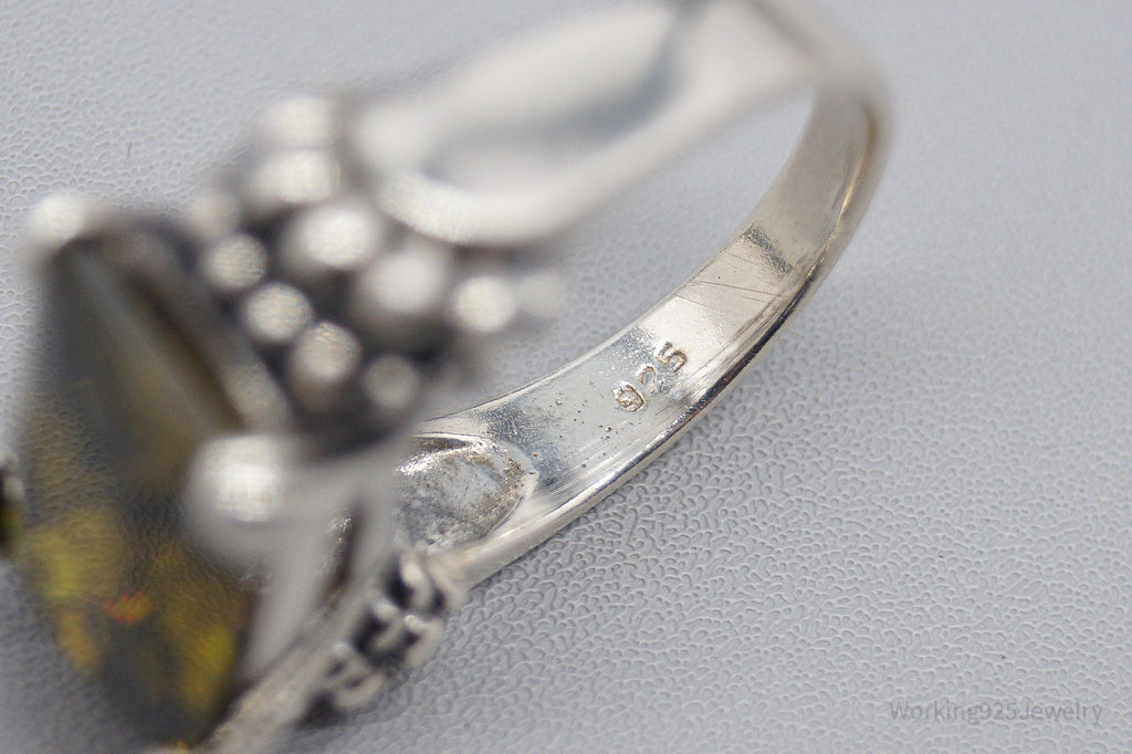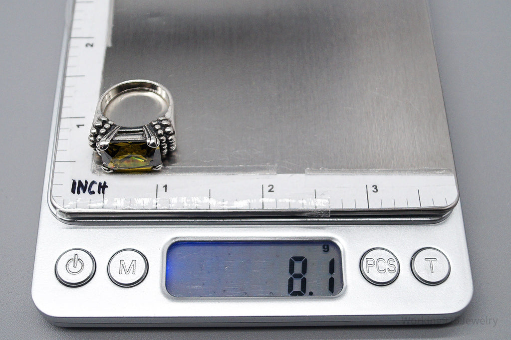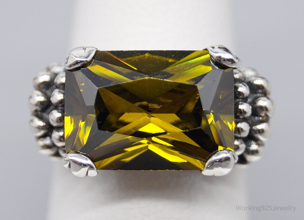 Vintage Yellow Cubic Zirconia Sterling Silver Ring Size 6