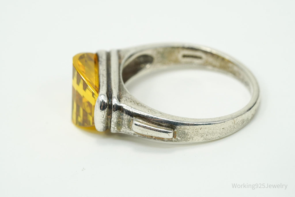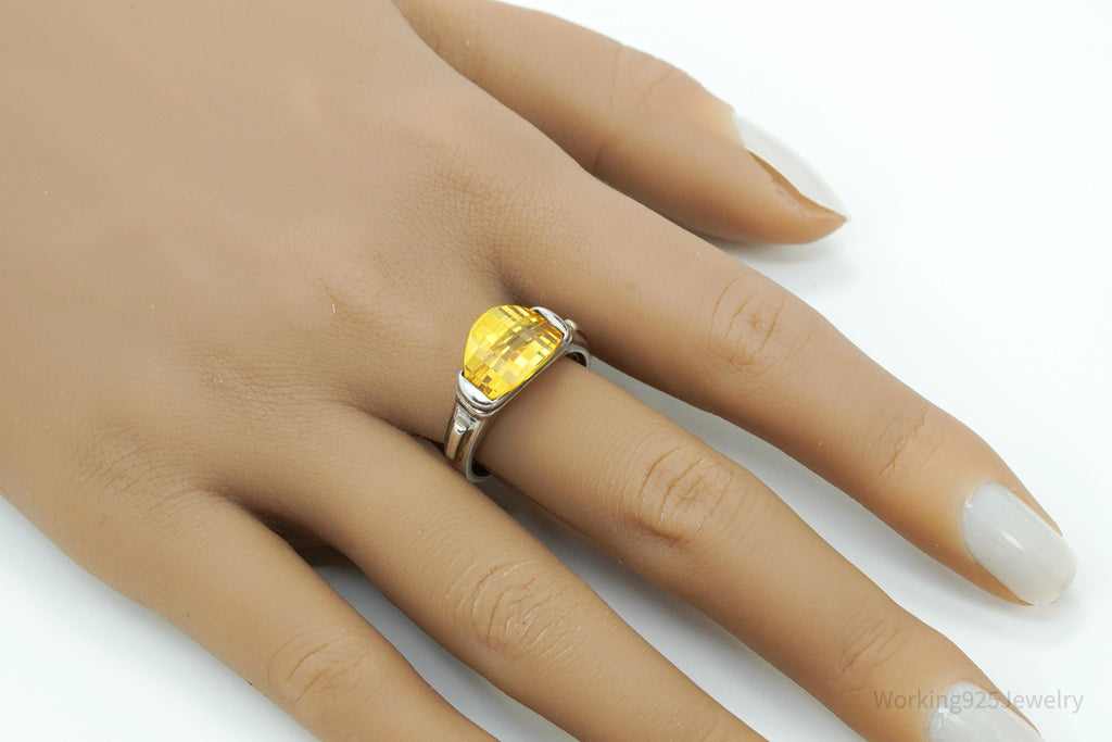 Vintage Yellow Diamonique Cubic Zirconia Sterling Silver Ring Size 9.25