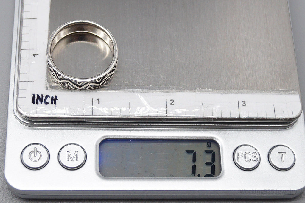 Ring Listings: It is sometimes difficult to determine how a ring will fit without being able to try it on. I always recommend taking your favorite ring to a local jeweler and comparing the way that it sits on a mandrel (ring sizer) with the pictures in the listings prior to purchase. Sometimes wide band rings fit a little differently and I always want my customers to be 100% happy with their purchases! Please let me know if I can help by offering more pictures for size comparison. Note: all ring mandrels are not made equally so we do our best to provide an accurate demonstration of fit, but are always happy to also provide mm measurements if you are looking for an exact size.