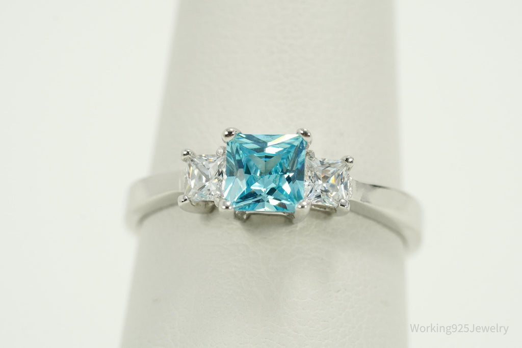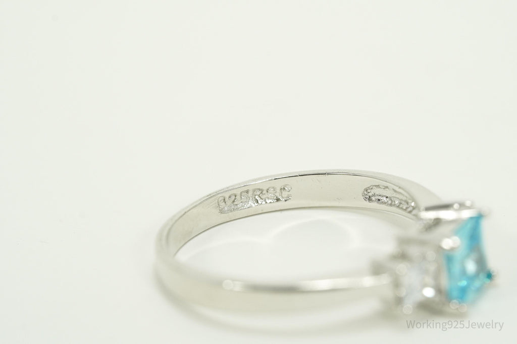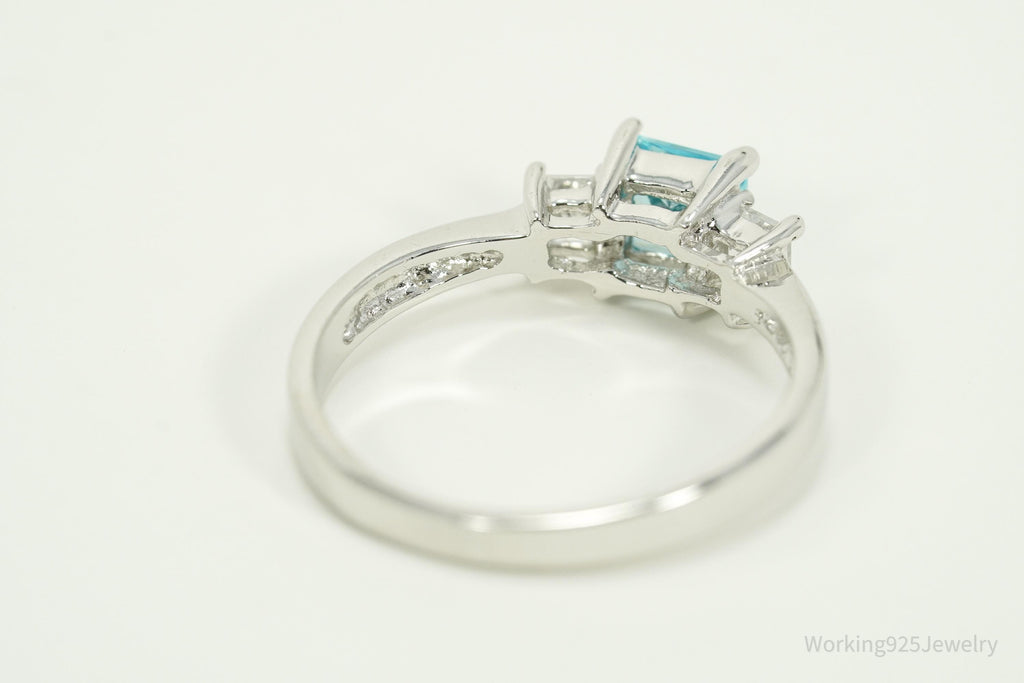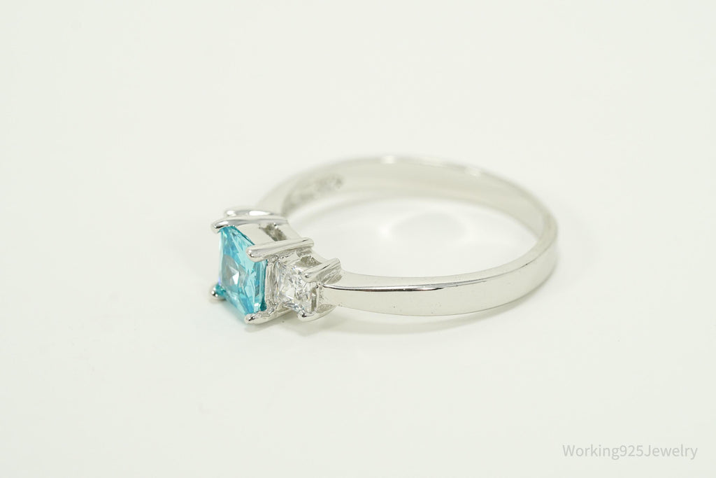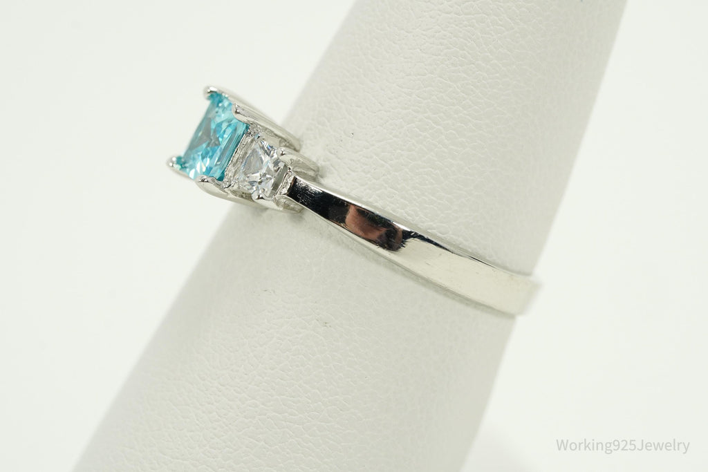 VTG Blue & White Cubic Zirconia Sterling Silver Ring - Size 7.25