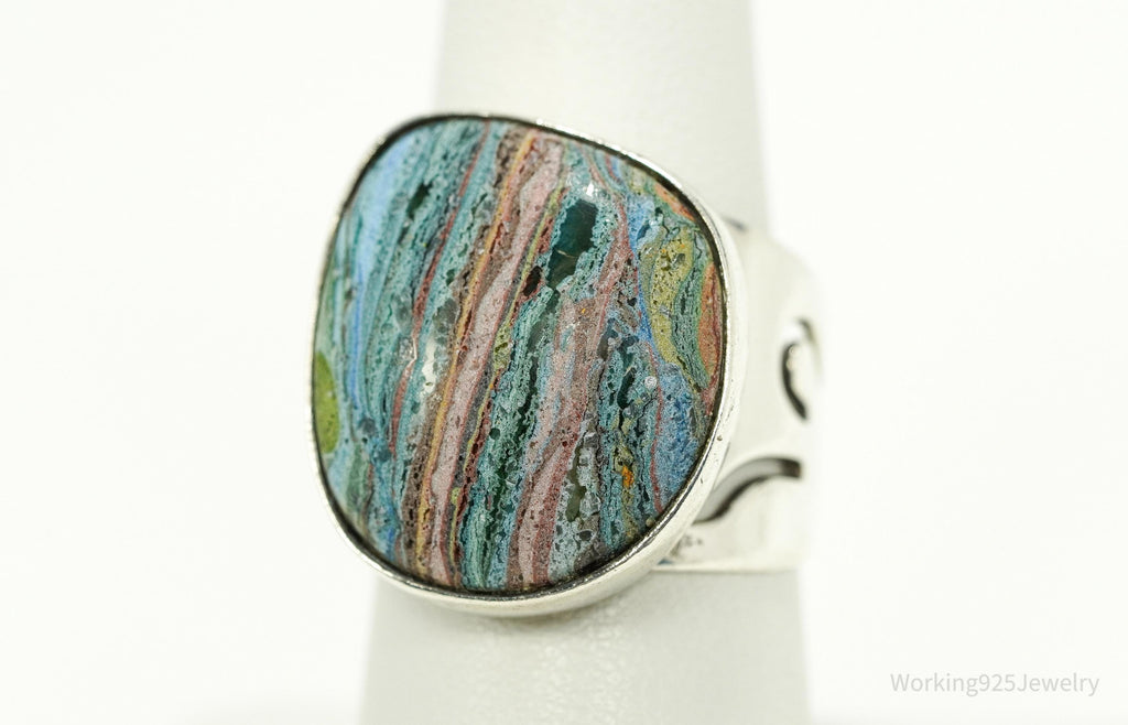 VTG Designer Desert Rose Trading Rainbow Calsilica Sterling Silver Ring - 8.25