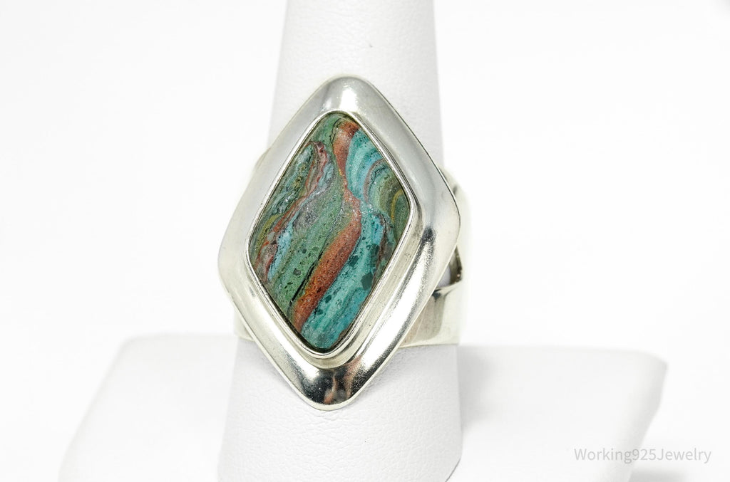 VTG Jay King Desert Rose Trading Rainbow Calsilica Sterling Silver Ring - Size 10